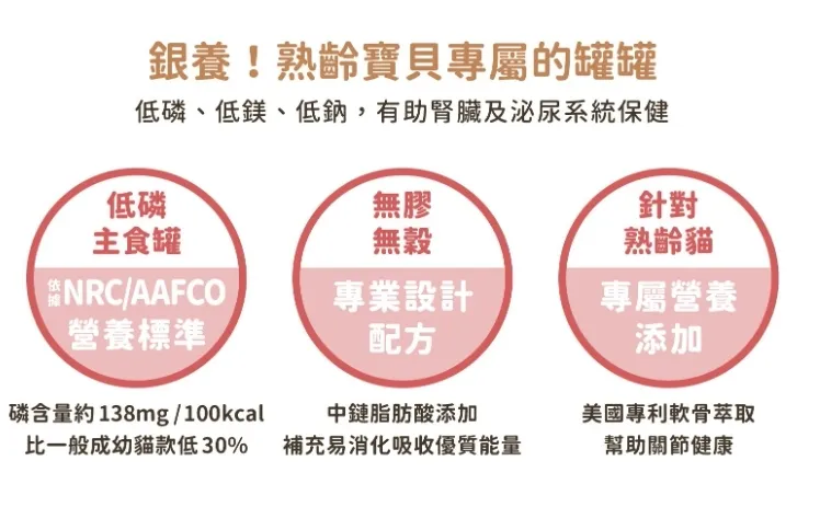 熟齡貓98%低磷無膠主食罐/銀養罐 | 85g整箱