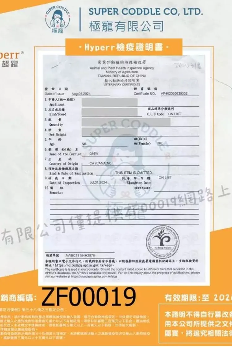 粗蛋白(min)37%、粗脂肪(min)17.9%、粗纖維(max)3.1%、水分(max)9.6%、Omega-6(min)3.1%、Omega-3(min)0.3%、熱量(kg)4,038kcal