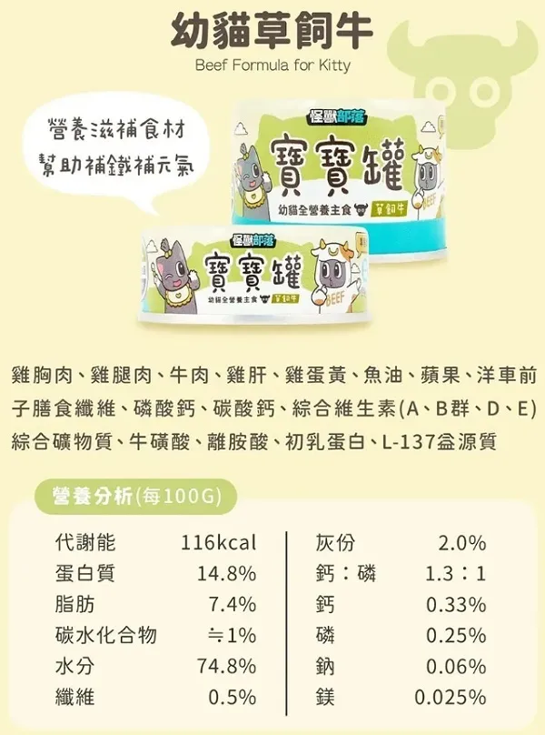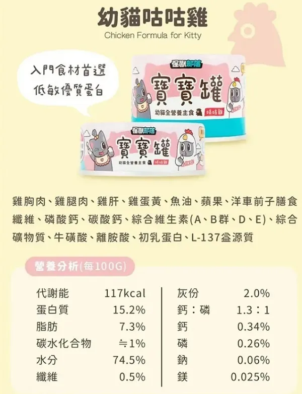 怪獸部落|幼貓專用 寶寶無膠主食罐 82G