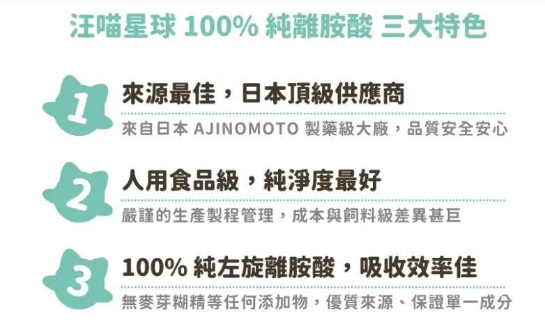• 100%日本製藥大廠 Ajinomoto 純淨離胺酸