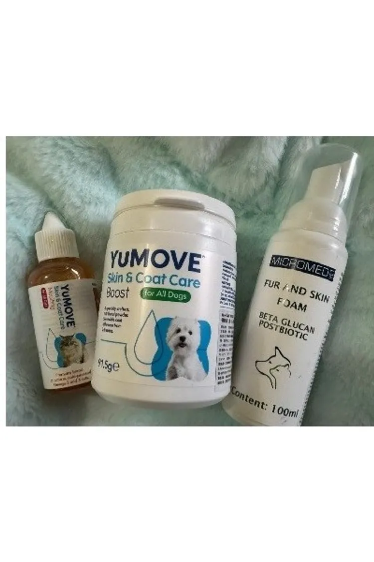 護毛三件套:厚生元乾洗劑、Yumove爆毛粉和貓油