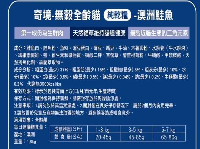 TRILOGY 奇境 無穀全齡貓 純乾糧 1.8kg*1包(1.8公斤送300g)