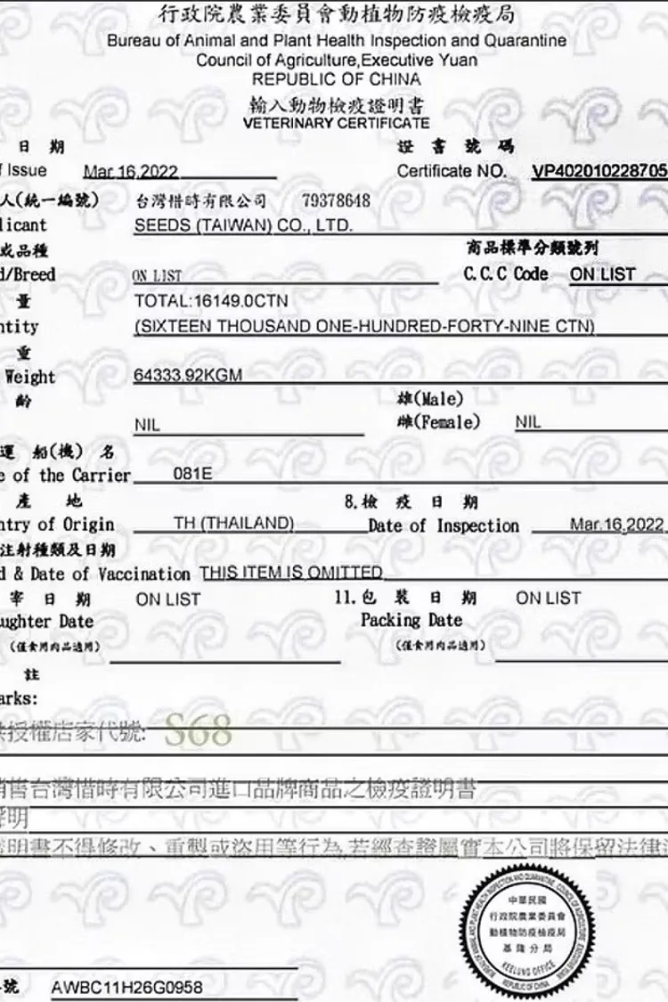 主要原料及添加物:白身鮪魚、雞肉、膠凍、再製起司、維他命E、果寡糖、維他命A